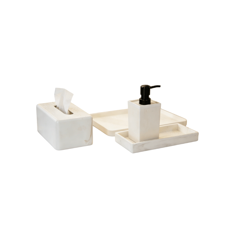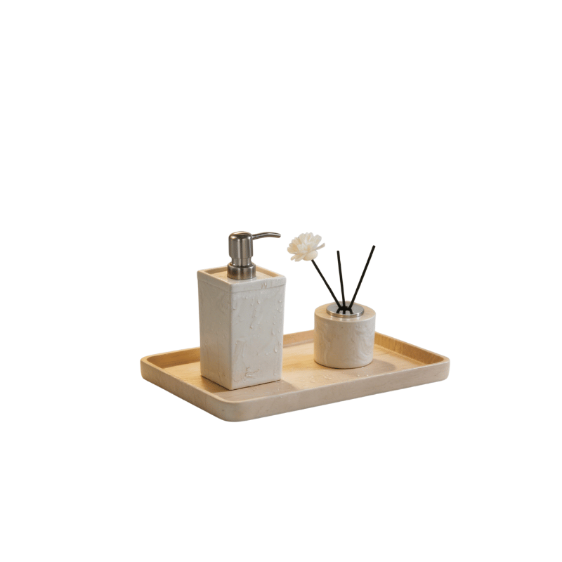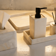 Premium BMC accessories for hotels and homes, including lotion bottles, soap dishes, trays, toothbrush holders, cotton boxes, and more.
